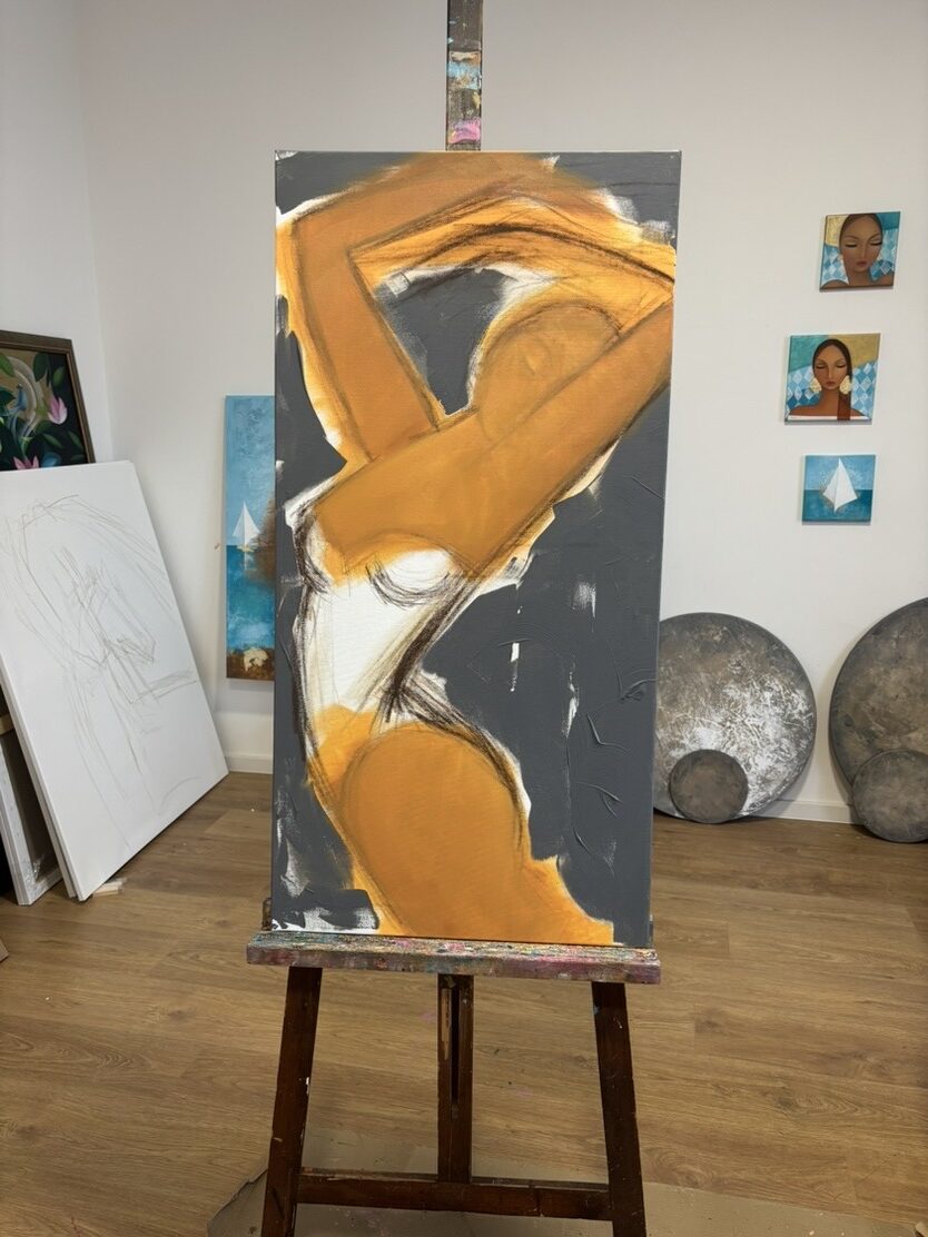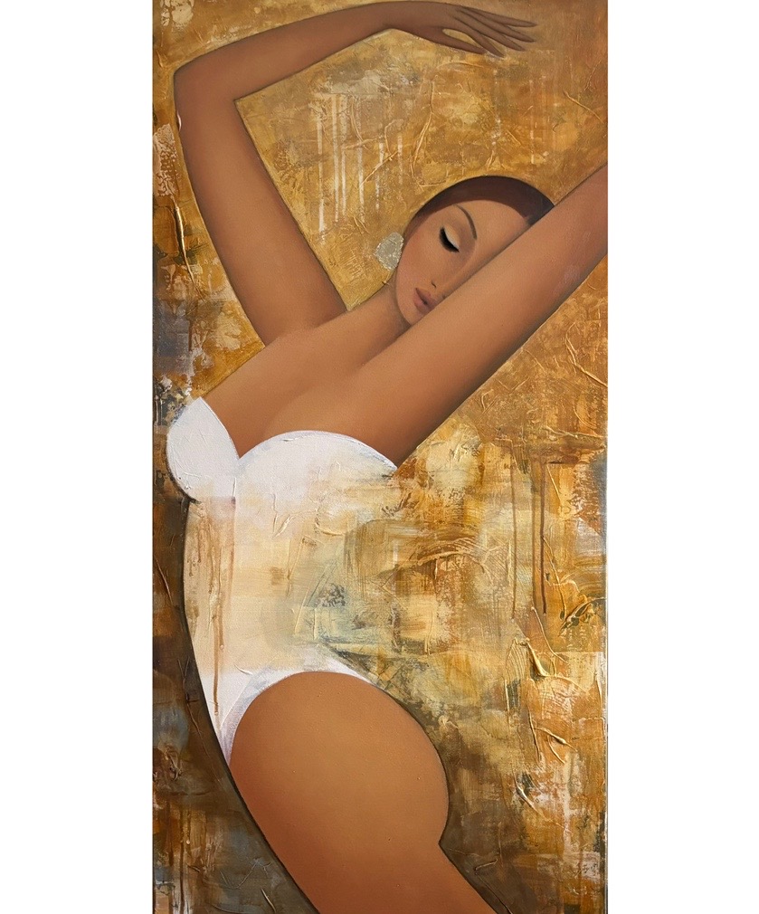 I am a painting that breathes with the space around it. In a modern interior, I become a statement — quiet, yet impossible to overlook. I bring an atmosphere of calm, sophistication, and subtle passion.