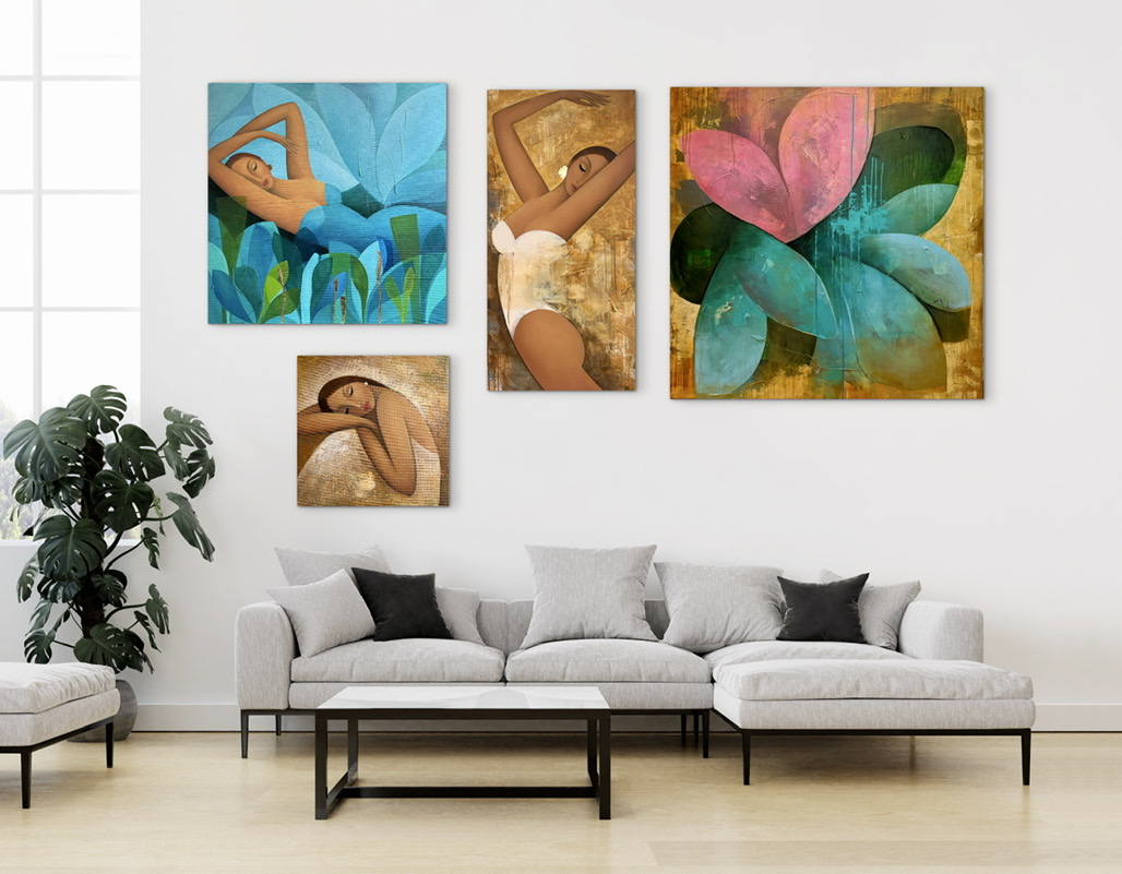 Jsem obraz, který dýchá s prostorem. V moderním interiéru se stávám statementem – tichým, ale nepřehlédnutelným. Přináším atmosféru klidu, sofistikovanosti a jemné vášně.